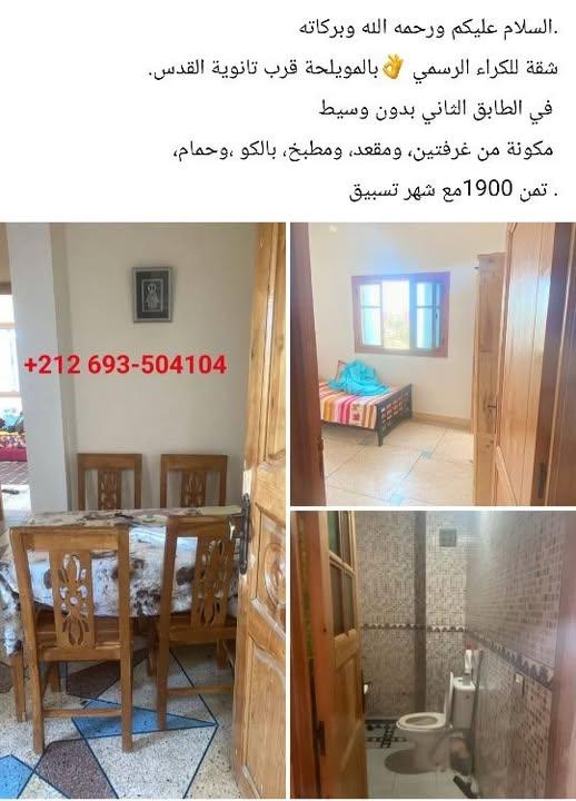 للاتصال: 0662133434📢 للـكـراء فـي مراكش – عزوزية 2 (Aazouzia) أنا المالك مباشرة، ماشي سمسار ولا وكالة. كاينين جوج شقق للكراء فـ عزوزية 2، حدا المحطة الطرقية الجديدة ديال مراكش. 🏢 الشقق فـ الطابق الأول والطابق الثاني 📐 المساحة: 120 متر مربع لكل شقة ✨ مواصفات الشقة: 🛏️ 3 غرف نوم 🛋️ صالون واسع 🚿 جوج حمّامات 🌿 3 بالكونات شقق مضوية ومهوّاة مزيان 📞 للاتصال: 06621334340 Commentaires 0 Publications 899 Vues 0 Avis1
